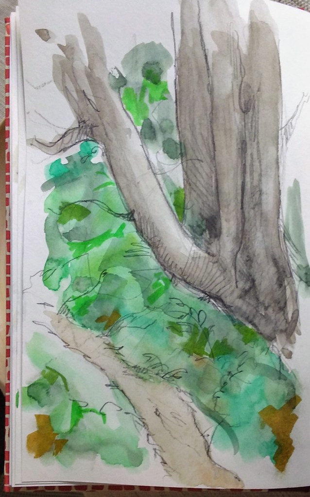 Hoy traigo un dibujo del Monasterio de Oseira, en una vista desde una zona alta y también uno, especialmente rápido, que hice cuando me paseaba por los senderos del bosque cercano. Son bocetos con color, que fue dado en casa con acuarela. Hace tiempo iba con todos los bártulos encima y daba el color in situ, pero con el tiempo he pasado a hacer el dibujo con el modelo delante y dar el color en casa. Este cambio fue por simples cuestiones de tiempo y logística, es evidente que el tiempo no da para todo cuando uno va de excursión, y cargar con todo lo necesario para colorear es bastante engorroso. Al final no queda mas remedio que encontrar un compromiso entre el dibujo y los aspectos mas prácticos.