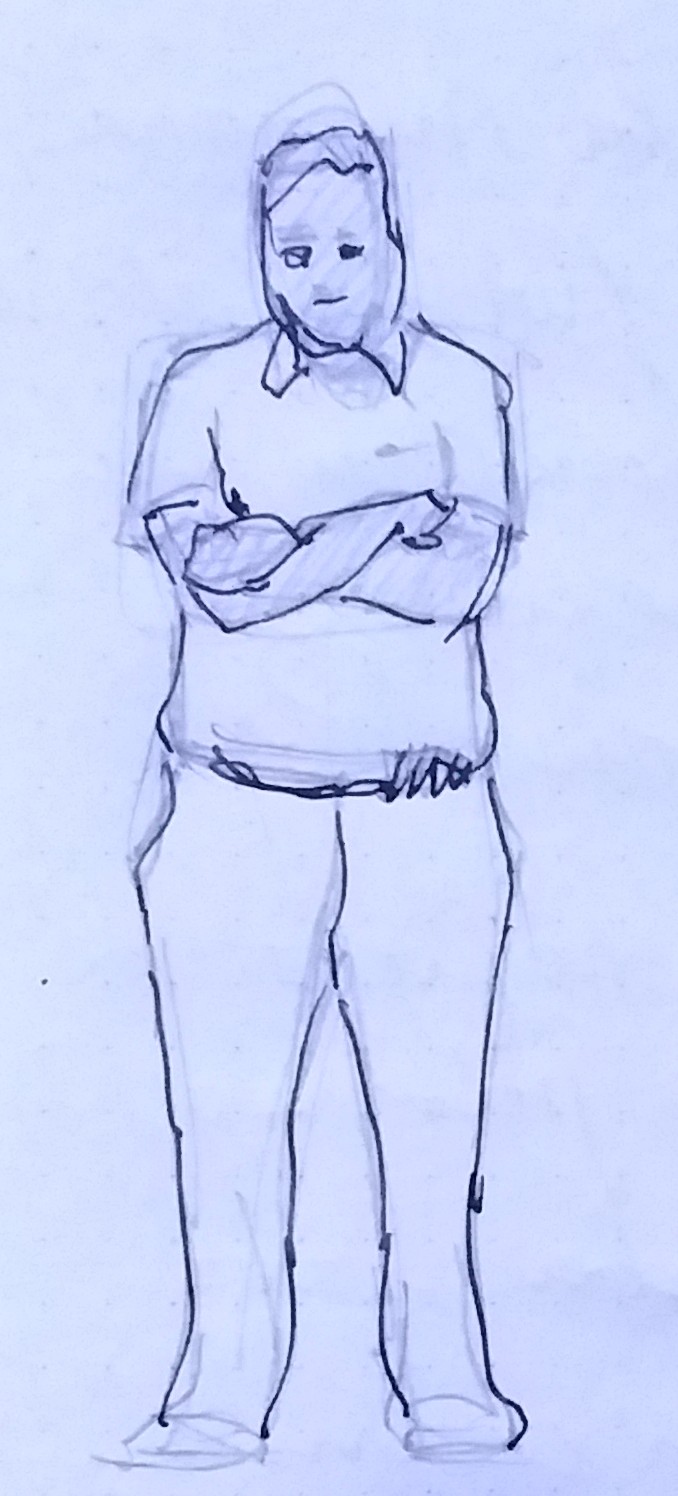Como ya dije en anteriores posts, lo mas importante a la hora de dibujar gente es conseguir reflejar la pose del modelo en ese momento, y transmitir las sensaciones que percibimos. Pocos trazos y lo mas certeros posible, aunque no necesariamente ejecutados de forma rapida, quiero decir que se suele tener la idea de que hay que gesticular mucho cuando se hacen dibujos rápidos, pero es más efectivo analizar primero y luego hacer el trazo. Hay mas tiempo del que imaginamos cuando se es novato en estos dibujos, para hacer hacer estos sketchs.