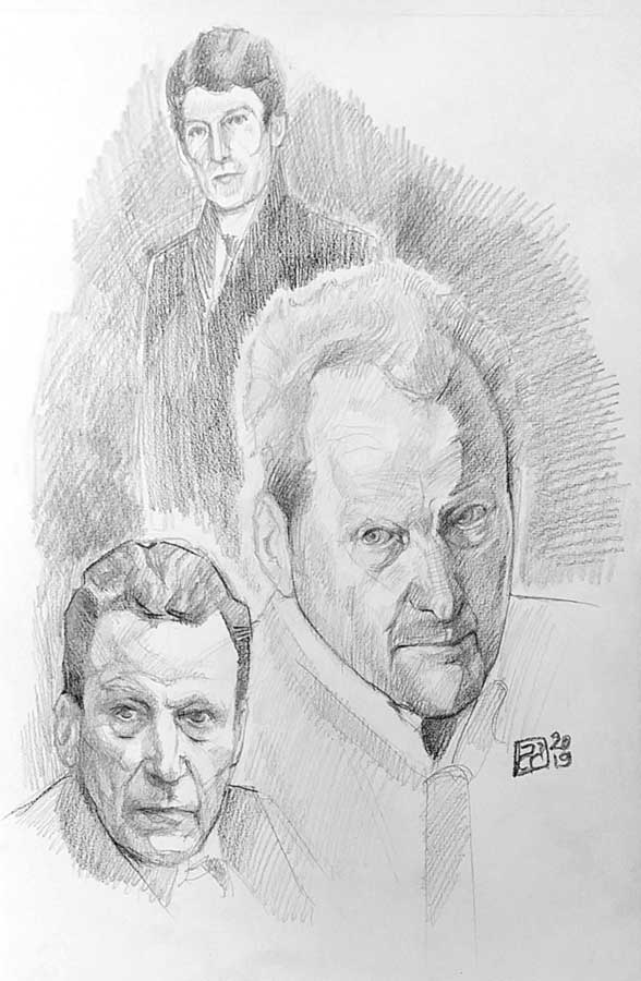 El dibujo que ilustra la entrada es un retrato al grafito, con algunos retoques de carbón. Retrata al personaje en tres etapas de su vida. Por supuesto no estoy a su altura como retratista, ni tampoco llego al nivel de crueldad que demuestra en su autoretrato más famoso. El tiempo pasa para todos y todos somos carne que se marchita, incluso Lucien Freud, como los retratos y desnudos que pintaba.