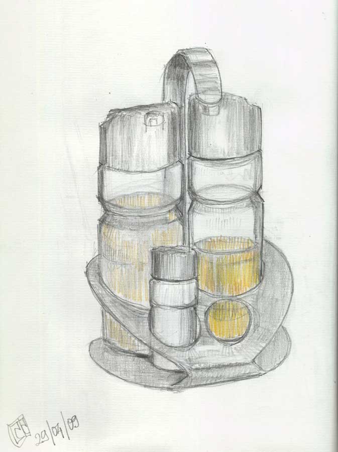 A todos los que dibujamos o creamos algo en general nos ha pasado, en más de una ocasión, que después de hacer un dibujo nos preguntamos ¿como pude dibujar esto? o bien nos hacemos aquella reflexión que dice «le falta algo», otra variante es «¡Buf que fallo! ¿como no me dí cuenta de que…..? ¿Para que perdería tanto tiempo dibujando una taza y por encima para este resultado? Y una vez que la pregunta y/o exclamación ha sido proferida nos apresuramos a esconder el terrible error anti natura de turno, nos pasamos unas cuantas horas pensando que no valemos para esto, que no sé por que me empeño en, etc. Aunque casi siempre por suerte acabamos reincidiendo y cogiendo de nuevo los bártulos para dibujar. Es decir que la vida sigue, pasa el tiempo.