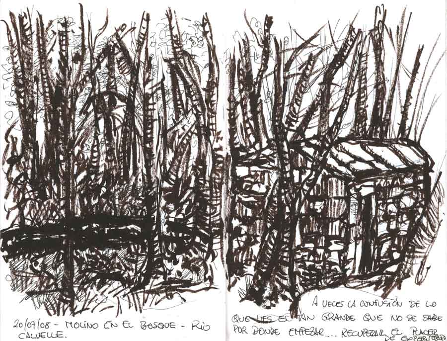Yo cuando estoy en un bosque reconozco que siento algo de pánico escénico. Quiero decir que tengo tantos elementos ante mí que no sé muy bien por donde empezar, eso condiciona mi estilo. Si mi mente está en calma mi estilo será mas pausado, con más detalles, mientras que con un estado mas eufórico habrá mucha mas gestualidad. Al final como suelo decir lo importante es transmitir lo que uno siente ante el modelo. En cualquier caso el tema, como todos, puede ser tratado a través de cualquier técnica , es decir con lineas puras, con masas, con óleo, acuarela, grafito o tinta. En esto se parece a cualquier tema que ver con la naturaleza, que son ideales para desarrollar estilos mas libres y afinar la creatividad. Yo recomiendo tratarlo de cuando en cuando para crecer como artistas.