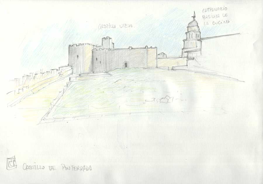 Rescato y muestro estos dibujos de hace unos cuantos años sobre el Castillo de Ponferrada. Son unas piezas que pueden ilustrar perfectamente algunos de los conceptos que he ido tratando a lo largo de estos meses. Como son «trozos, menos es mas» donde explicaba que a veces basta con capturar algunos aspectos de un lugar, un ángulo o una silueta para reflejar la esencia de ese lugar o del momento en el que estamos. También serviría para ilustrar la entrada sobre los «lápices de colores» ya que los colores que se pueden ver en estos dibujos están hechos con ese medio. Un medio seco sencillo, pero que es muy útil para acompañar a los «sketch urbanos» que hagamos, además de ser un medio muy potente y con personalidad propia que en los últimos años ha ido adquiriendo cada vez más fuerza.