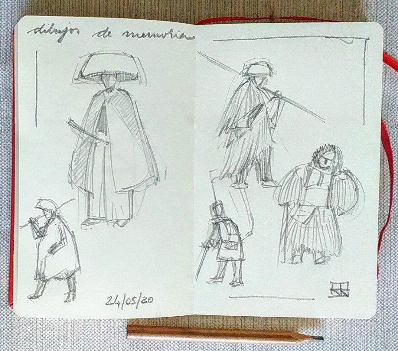 Hoy traigo unos dibujos esquemáticos, hechos con trazo suelto y con la técnica del grafito, como no. Mis mas antiguos seguidores (gracias) ya saben que es mi técnica fetiche; no encuentro ninguna que reuna tantas ventajas. La particularidad de estos dibujos es que están hechos de memoria. Es una técnica que consiste en mirar una imagen, o un objeto, durante unos minutos y luego dibujar de memoria lo que se recuerde. La temática es indiferente, se puede empezar por cosas no muy complejas y pasar a objetos mas difíciles.