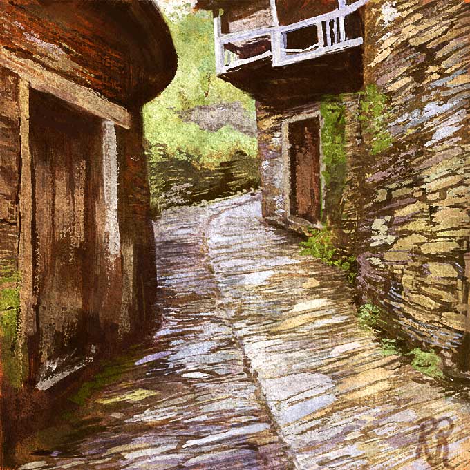 sigo rescatando antiguos trabajos, y como estábamos con las herramientas digitales, pues subo este paisaje de una calle de un pueblo hecho con herramienta digital, por el puro gusto de compartirlo. Espero que os guste.