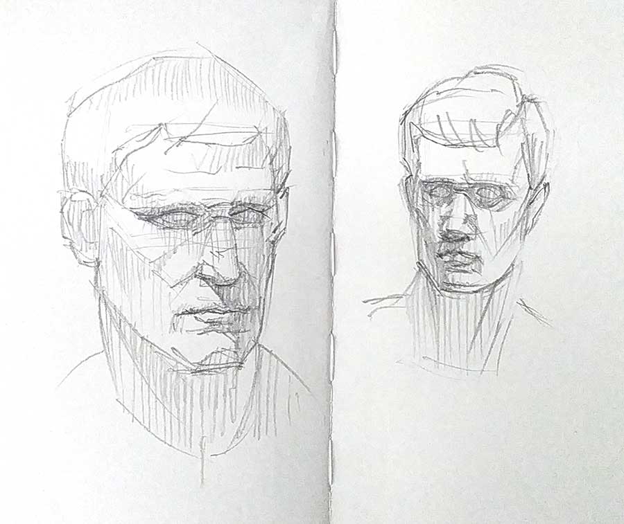 Los dibujos que subo hoy están hechos en 10 minutos en total, el poner límite de tiempo, o simplemente «intentar darse prisa» ayuda además a practicar a pensar rápido, agudiza el ojo, y ayuda esquematizar los dibujos. Si me pongo seguro que encontraría cosas que mejorar, midiendo con calma y comprobando. Pero no era la idea del ejercicio.