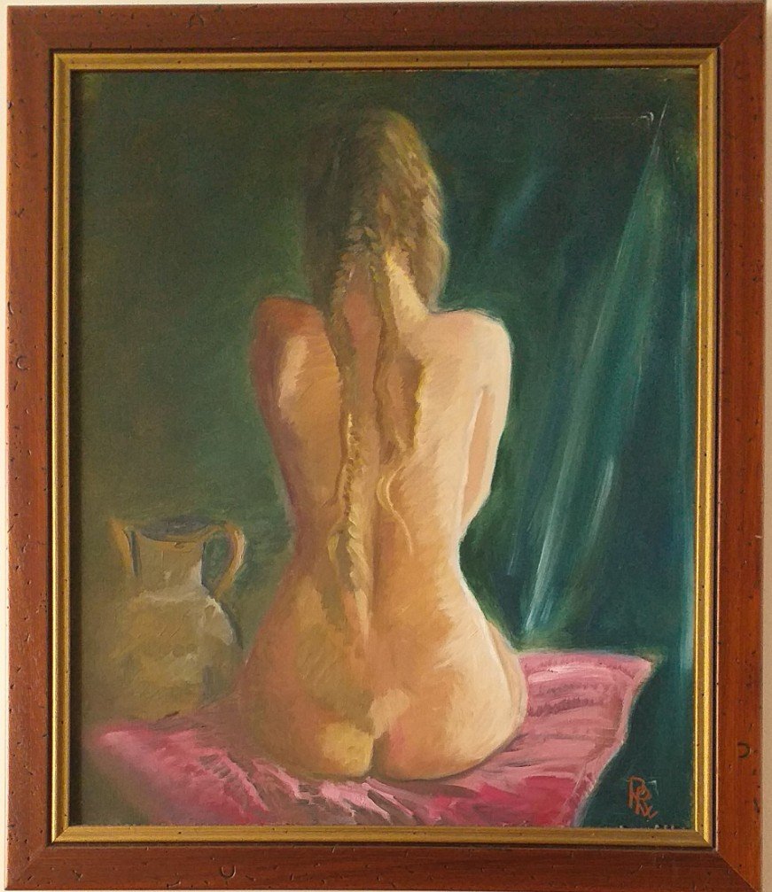 En fin que no me entretengo más, os dejo el cuadro (con marco y todo) del desnudo. No seais demasiado duros juzgando esta obra «de juventud». No os olvidéis de dibujar, y sobre todo de disfrutar dibujando, y pintando.