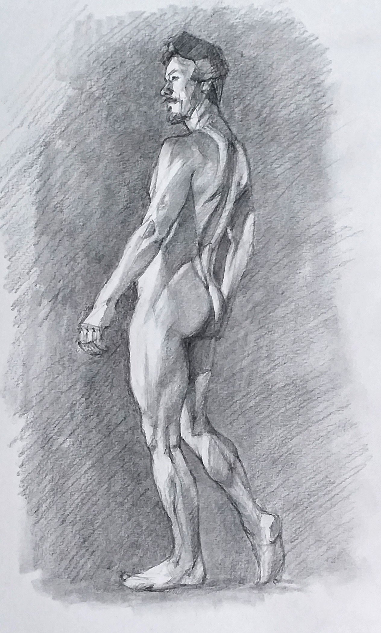 Para variar un poco un desnudo masculino, en grafito por supuesto. Evidentemente mucho más anguloso, y de construcción más lineal. Espero que os guste. No os olvidéis de dibujar, mucho.