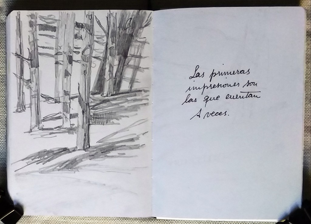Sigo trabajando con todo lo referente a los trazos, pero estos días también se cruzó en mi camino, mejor dicho en los caminos de mi mente, el concepto de unidad. Buscando una vía hacia el dibujo perfecto (objetivo obviamente inalcanzable), un dibujo con las proporciones correctas, pero expresivo al mismo tiempo, que no parezca congelado; acabé meditando sobre los métodos de dibujo, sobre cual es el mejor. Una idea llevó a la otra, pasé de la idea de esquema, a la de conjunto, a si debo medir o no, a si es mejor empezar con grandes líneas o empezar por una parte concreta y construir el resto a partir de ahí (muchos retratistas parten de los ojos para ir construyendo el retrato desde ese punto), ¿conclusión? no llegué a ninguna conclusión o más bien sí. Más bien dos, primera, que uno no puede dejar de ser uno mismo, y por tanto nuestro carácter tiene que entrar en la ecuación, y dos que por mucho que nos fijemos en los detalles de un dibujo, solo el conjunto hace de la obra, una obra redonda. Solo una sensación de unidad da sentido.