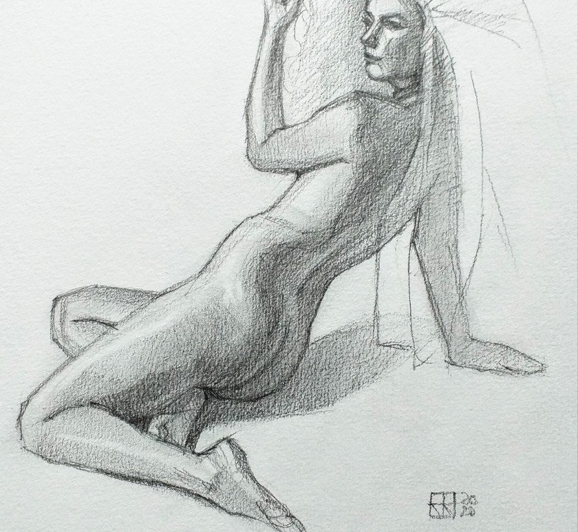 Hice este dibujo el domingo y ya desde el primer momento supe que iba a quedar así, con algunas partes que parecen inacabadas, o están inacabadas. De hecho las partes en blanco en el cuerpo de la modelo, en la foto, son sombras. Ahora parecen zonas quemadas por la luz. A veces no es necesario copiar todo lo que está en el modelo que usamos, … Continúa leyendo Técnica: dibujos incompletos pero acabados.